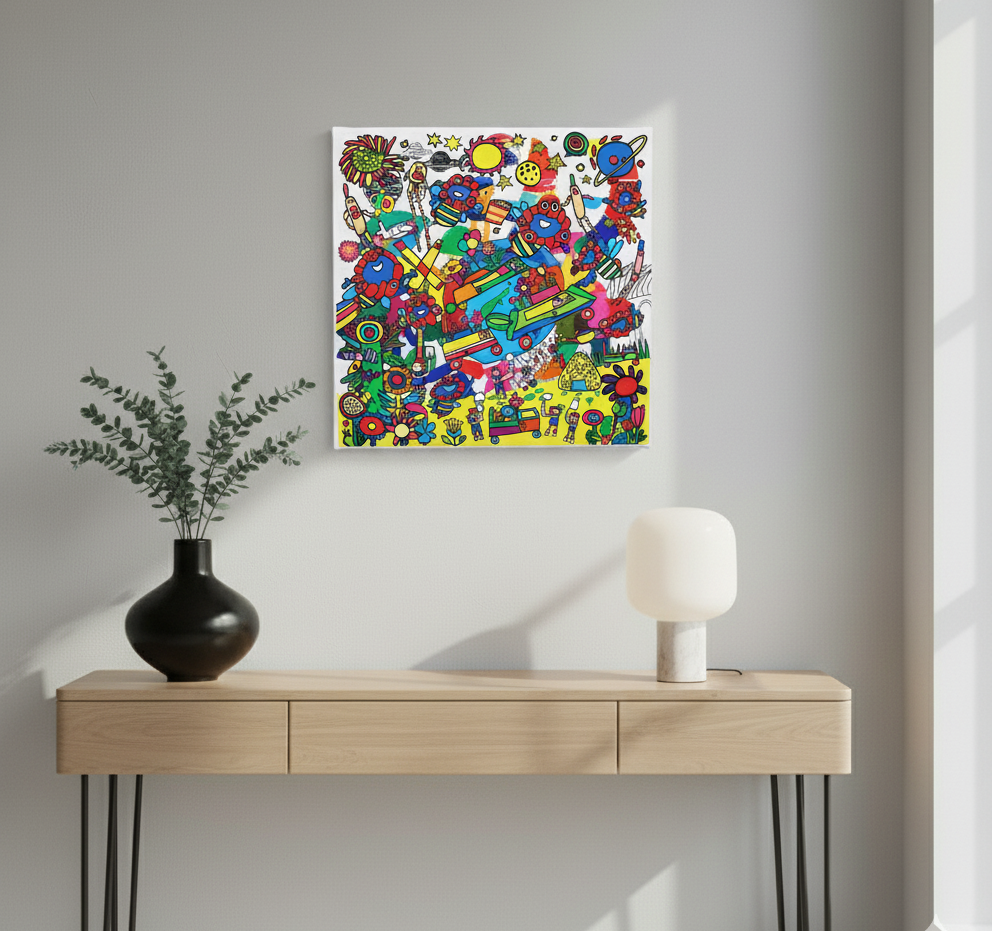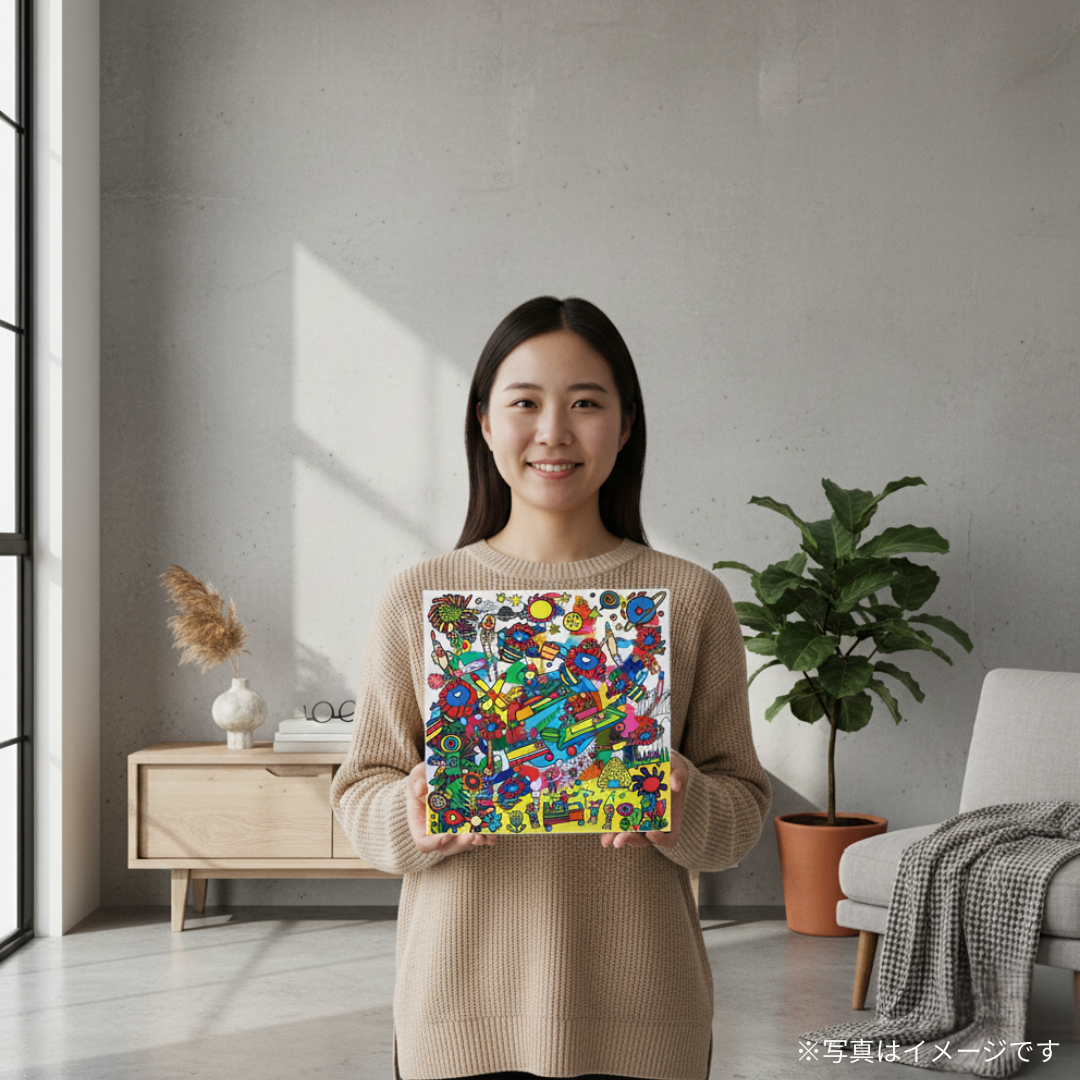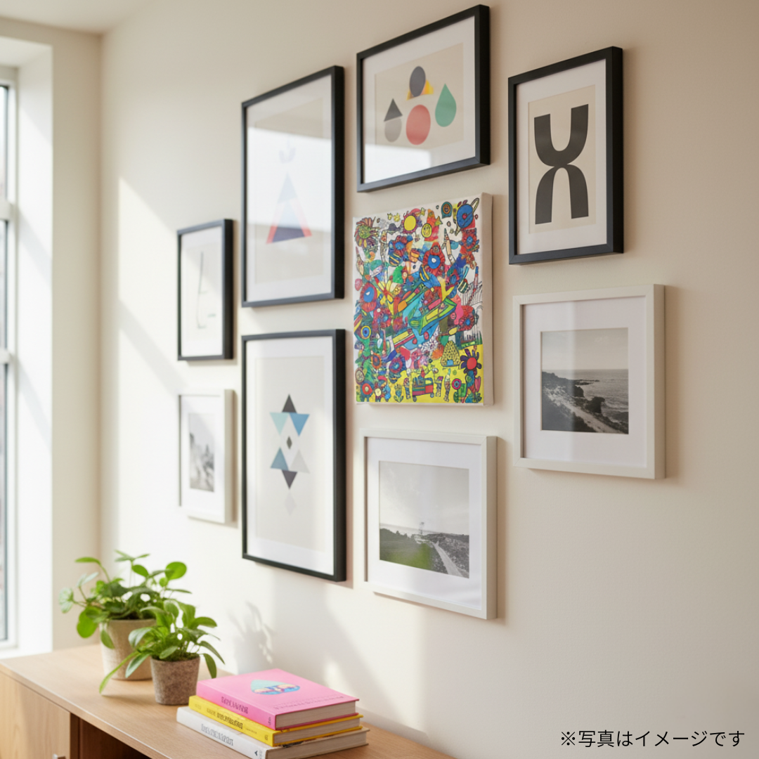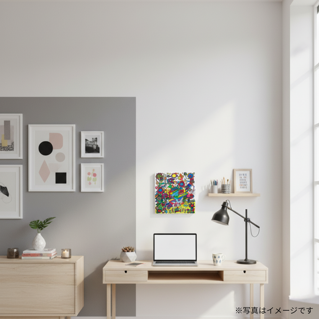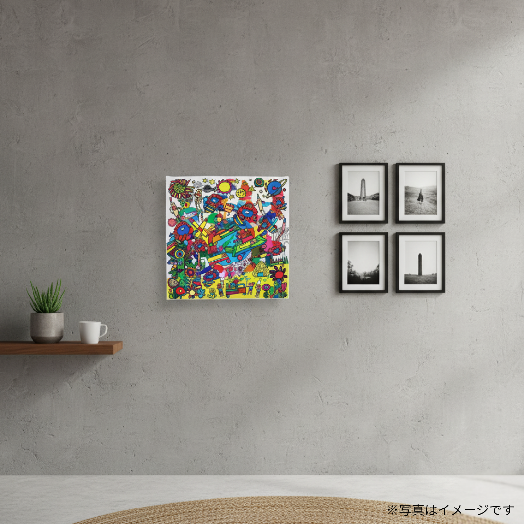 ジクレー印刷をキャンバスボードに手作業で張り込み施工をしています。