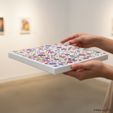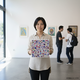 ジクレー印刷をキャンバスボードに手作業で張り込み施工をしています。