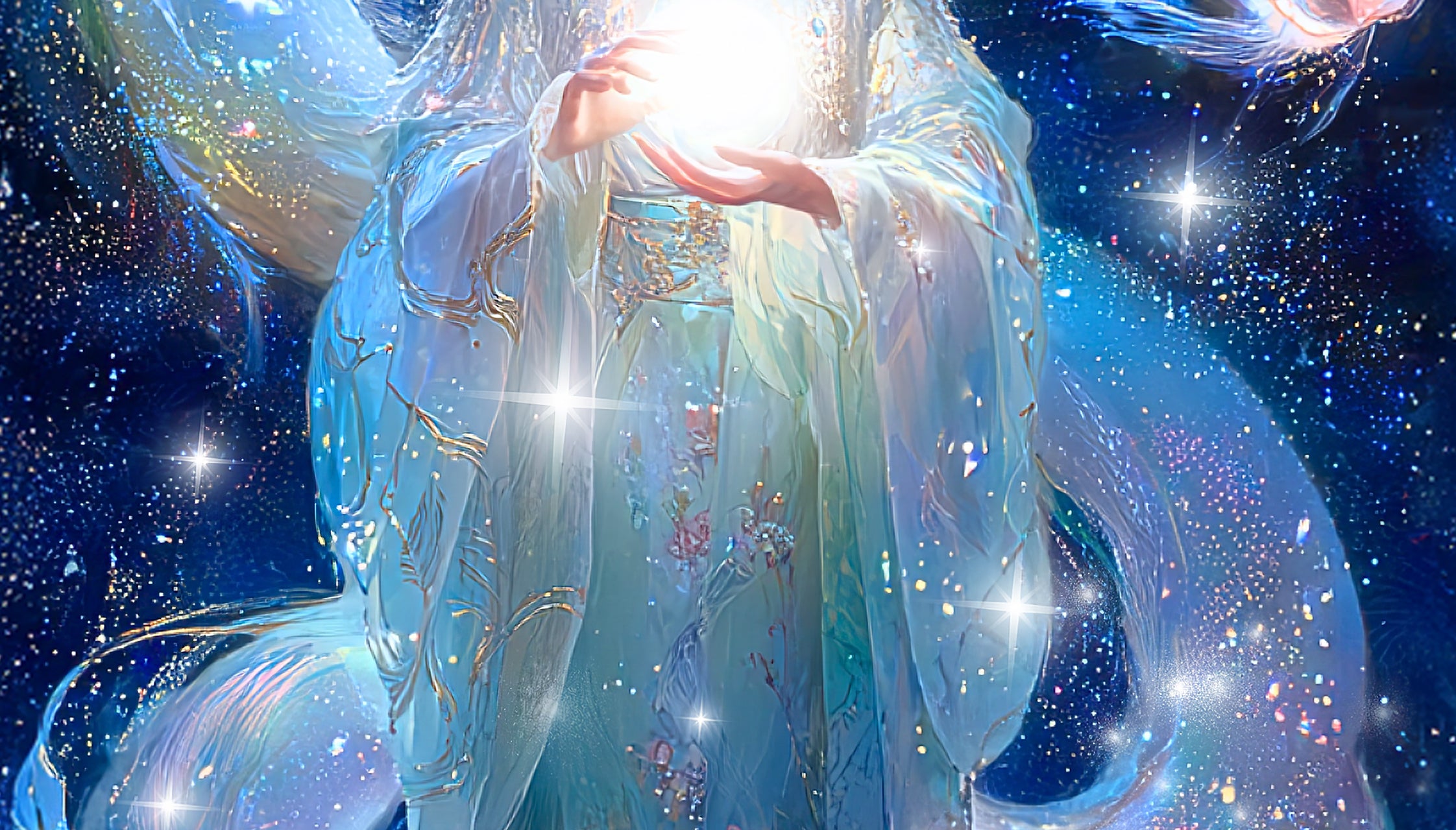 決意の背中を押す、神聖な光。『光を抱いて翔ける織姫 「決意の龍神」』