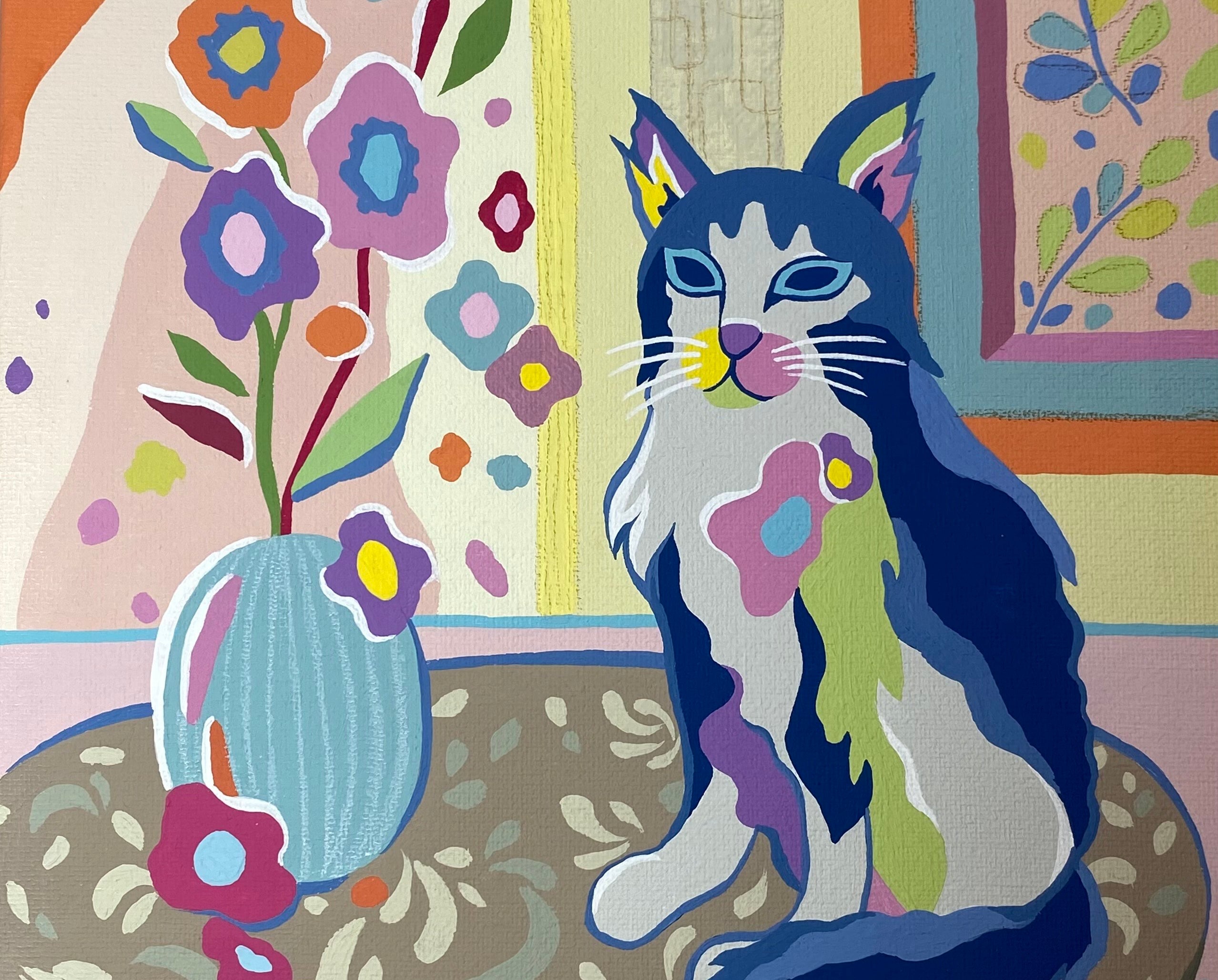 猫の柔らかな毛並みに映る淡い色彩は、まるで室内に飾られた花々のよう。