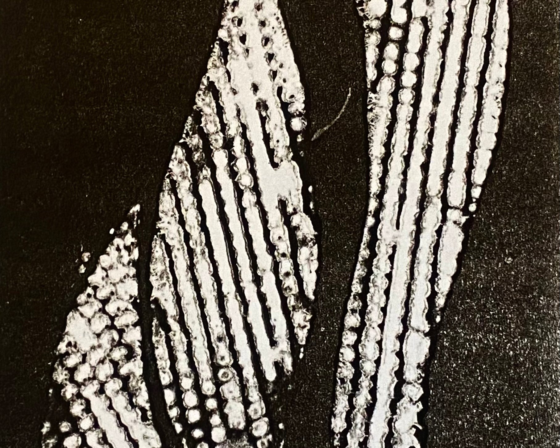 抽象的ながらも生命の息吹を感じさせる、神秘的な魅力を持つ作品です。