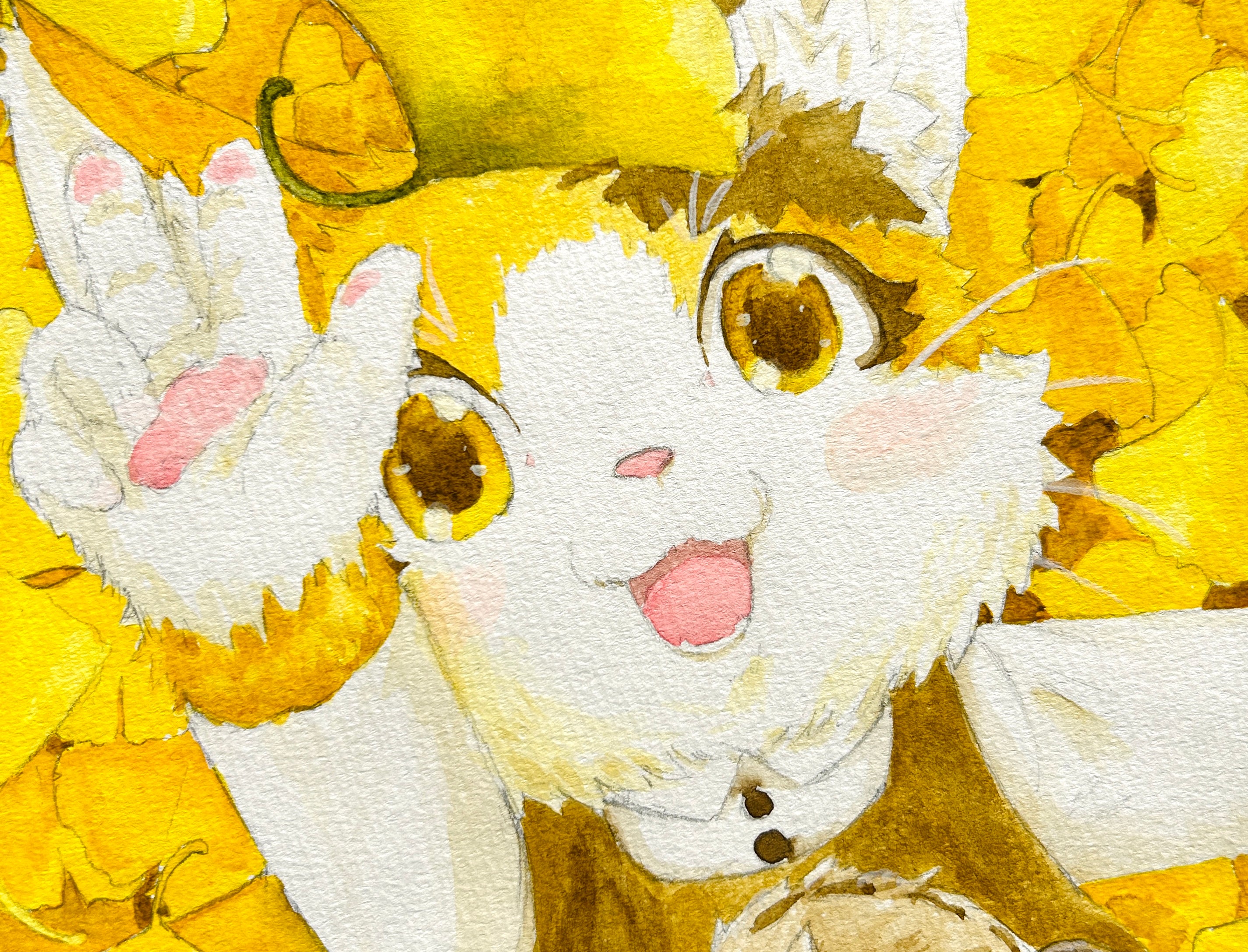 黄色いイチョウの葉が敷き詰められた地面にシトリンが寝転ぶ姿を思い浮かべて制作しました。